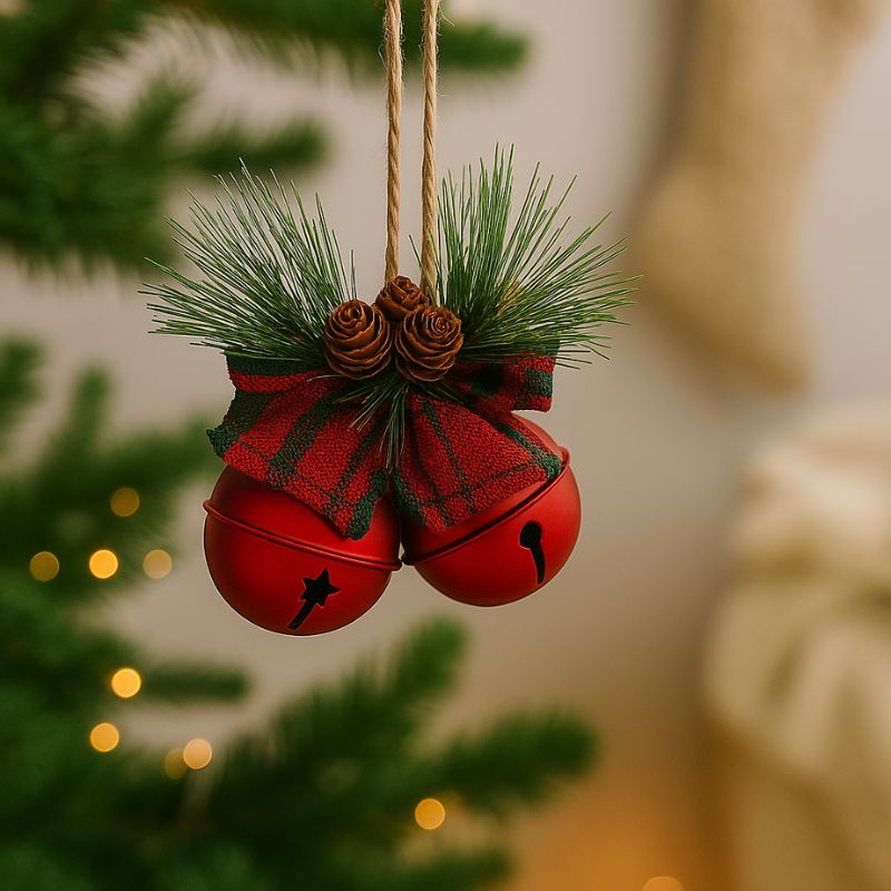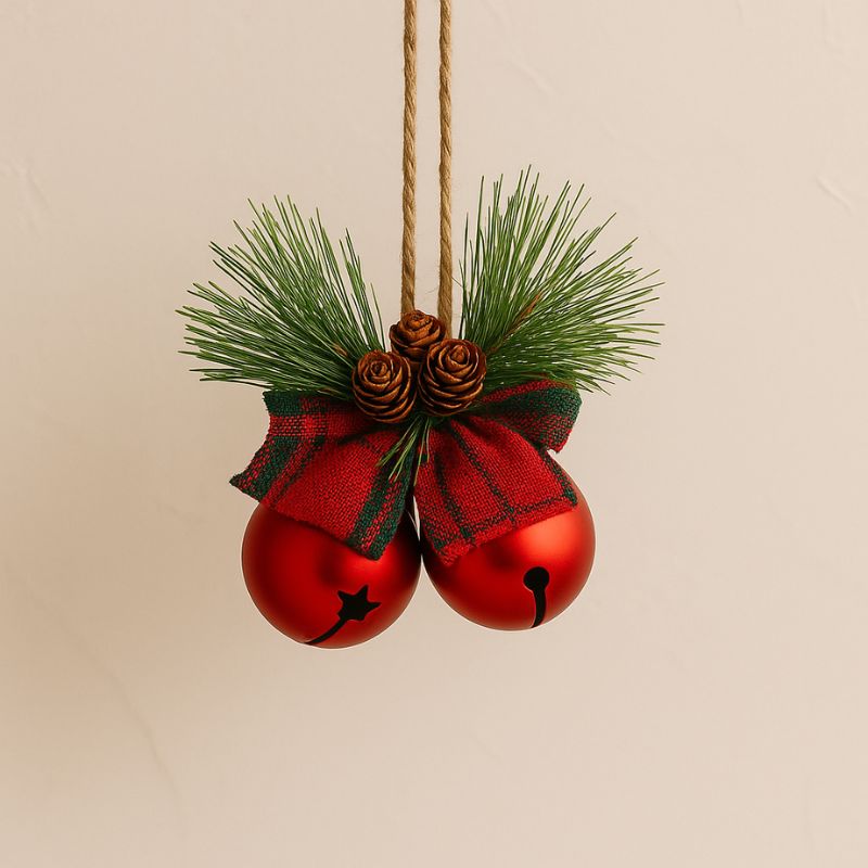 Un set di due splendidi campanellini rossi, con pigne, rametti e fiocchetto scozzese! Le campanelline hanno un diametro di circa 4cm e suonano! Perfette per essere appese sul tuo albero oppure come segnaposto, o ancora come decorazione in qualsiasi ambiente!