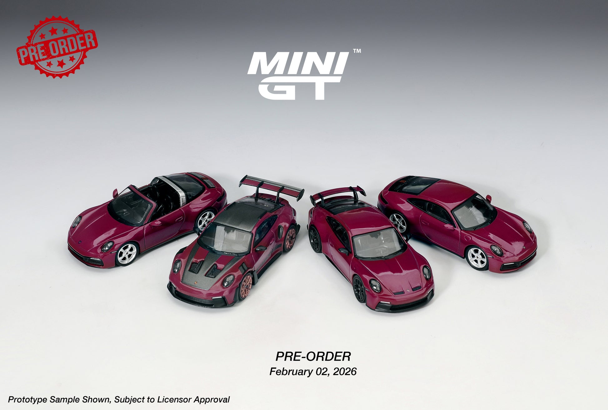 MINI GT Porsche 911 (992.1) Rubystone Red (4x Set) | 1235 - PRE ORDER
