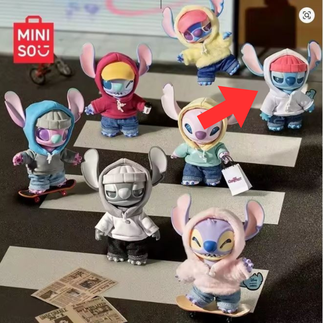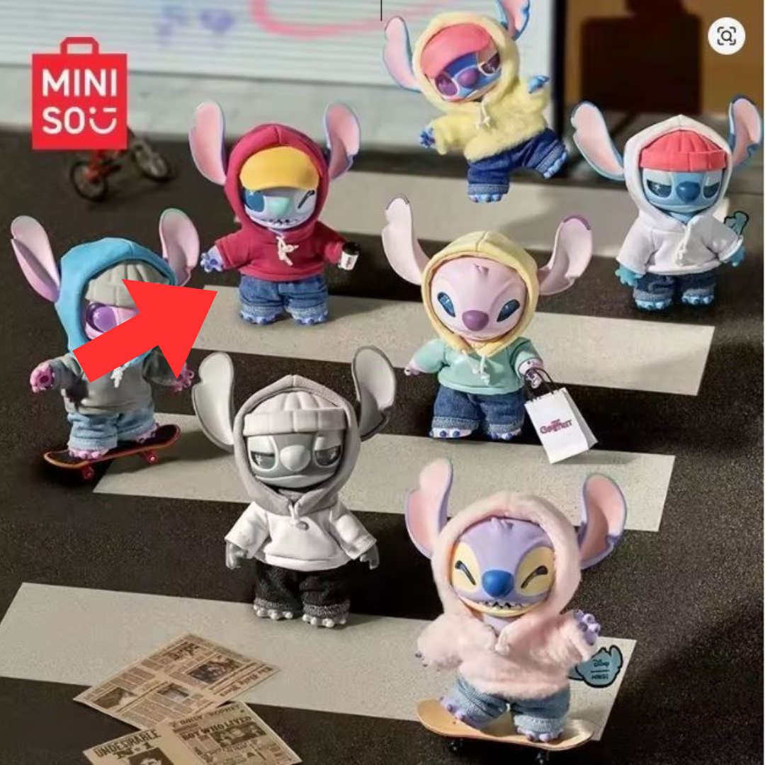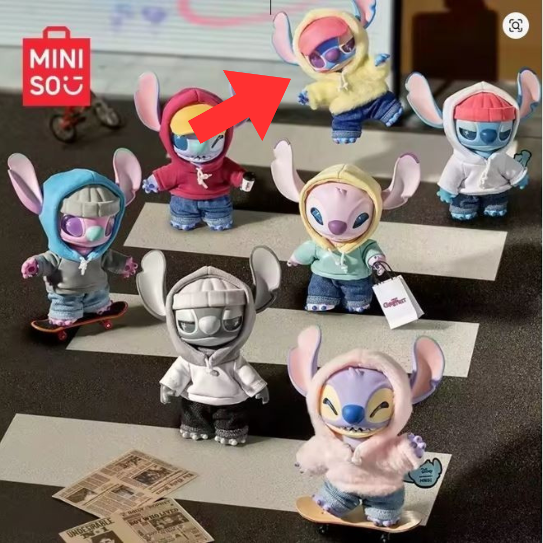 MINISO Stitch Gen Z Street: circa 15cm. Il contenuto è a sorpresa, quale Stitch troverai?Serie Miniso molto ricercata e difficile da trovare! Attenzione: gli accessori (es. skateboard, etc) non fanno parte del set.