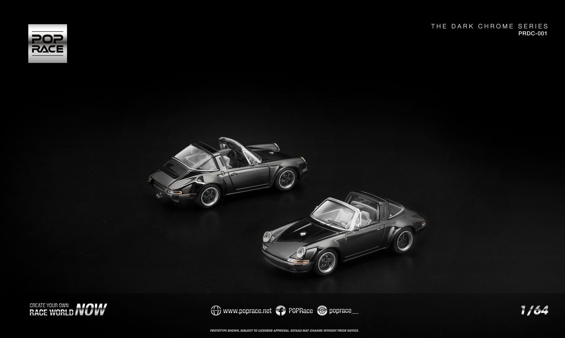 POP RACE Porsche 911 Targa Singer 1967 | Dark Chrome 1:64 - PRE ORDER