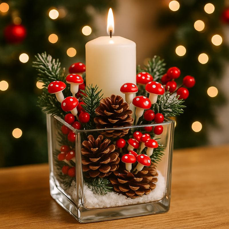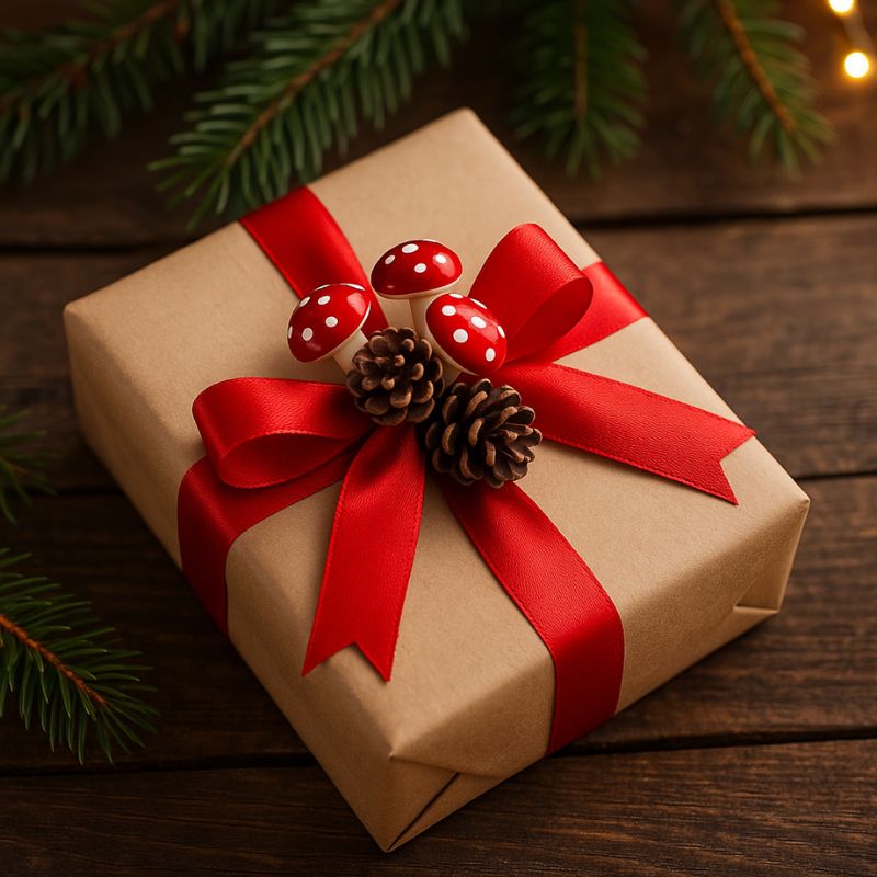 Un set di 11 chiudipacco e decorazioni a funghetto, con finiture eleganti! Dotati di filo modellabile, di 11cm circa di altezza (il fungo è alto 1.50cm). Usali per arricchire i tuoi pacchetti regalo, come segnaposto o come complemento decorativo! Modella lo stelo come preferisci, stupisci tutti con la tua creatività! Attenzione: le pigne non sono incluse nel set.